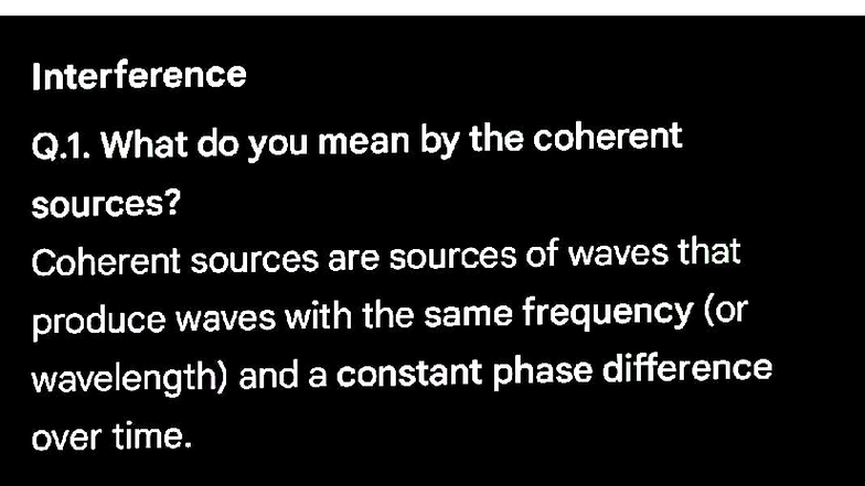 Understanding Interference and Coherent Sources in Waves | Course Hero