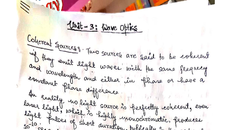 Ch 3: Wave Optics - Coherent Sources & Interference Patterns - Studocu
