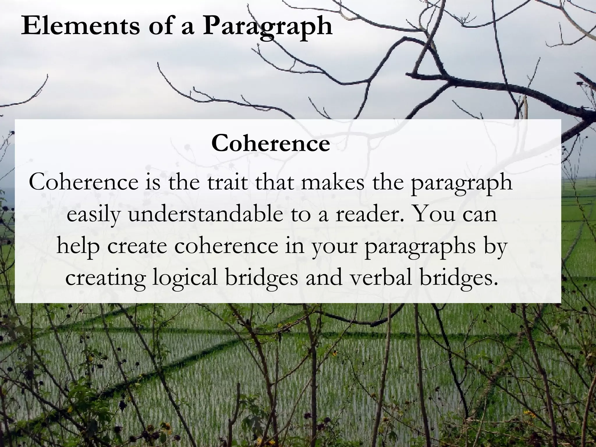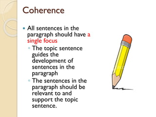 Paragraph Unity Coherence and Cohesion Coherence the ideas