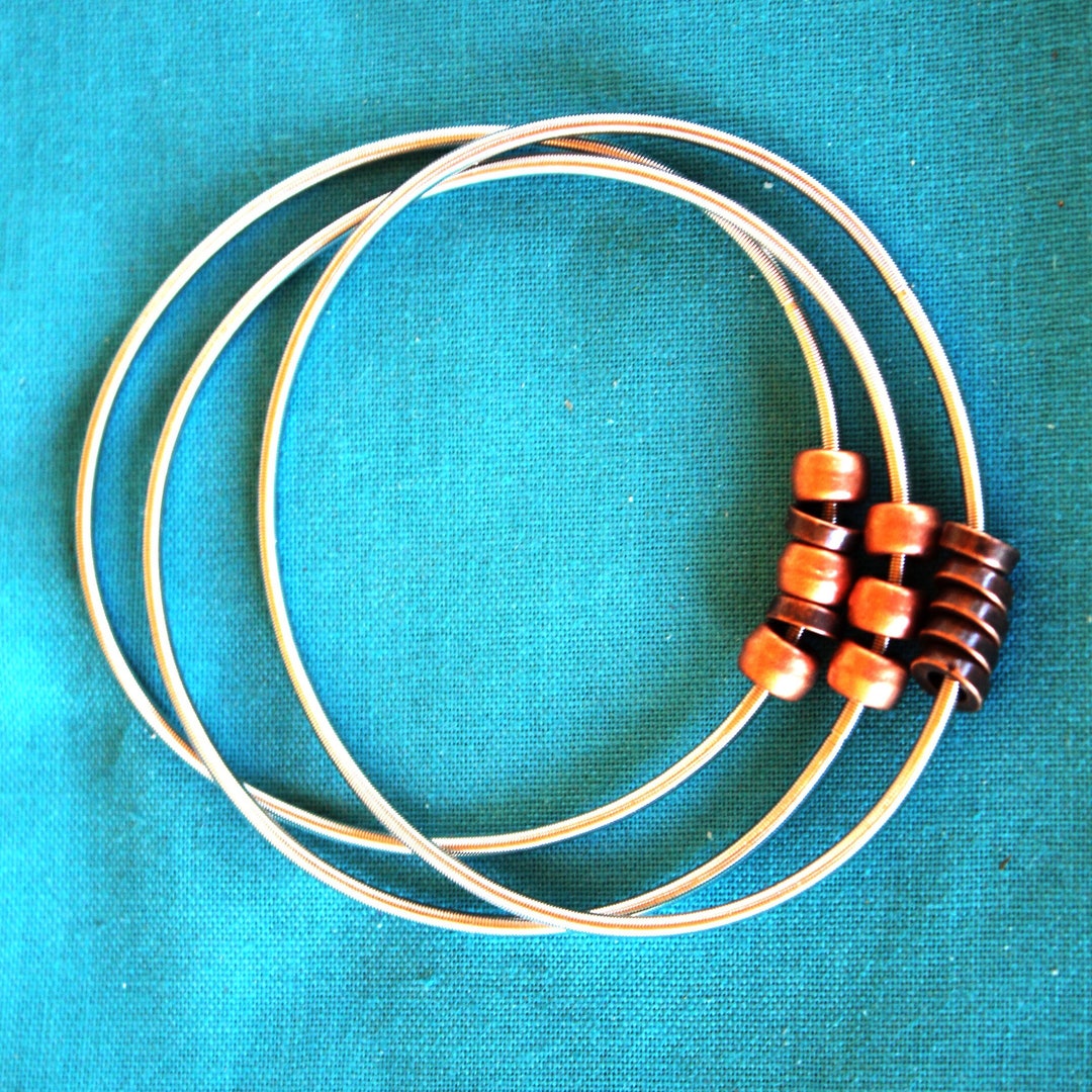 Trio of Guitar String Bracelets - Copper and Brass Beads on Silver ...