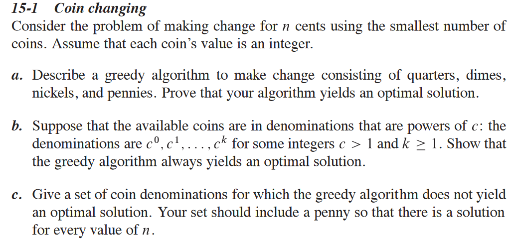Solved 15-1 Coin changing Consider the problem of making | Chegg.com