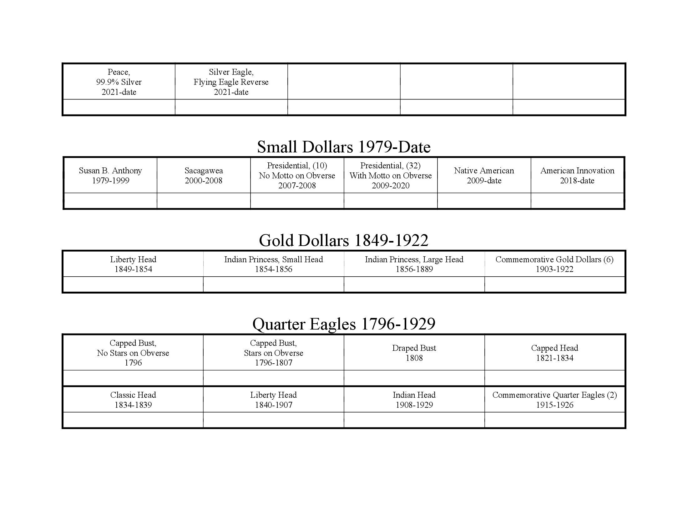 Printable Coin Collecting Checklist at Daniel York blog