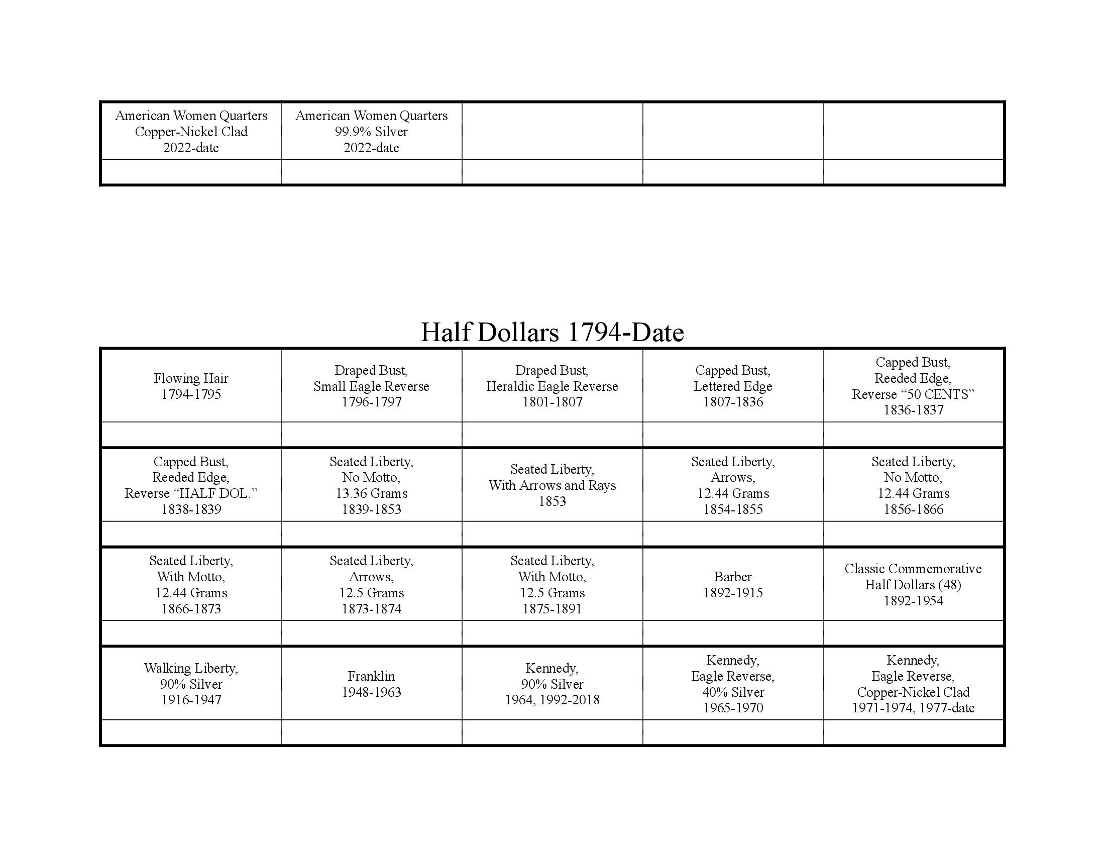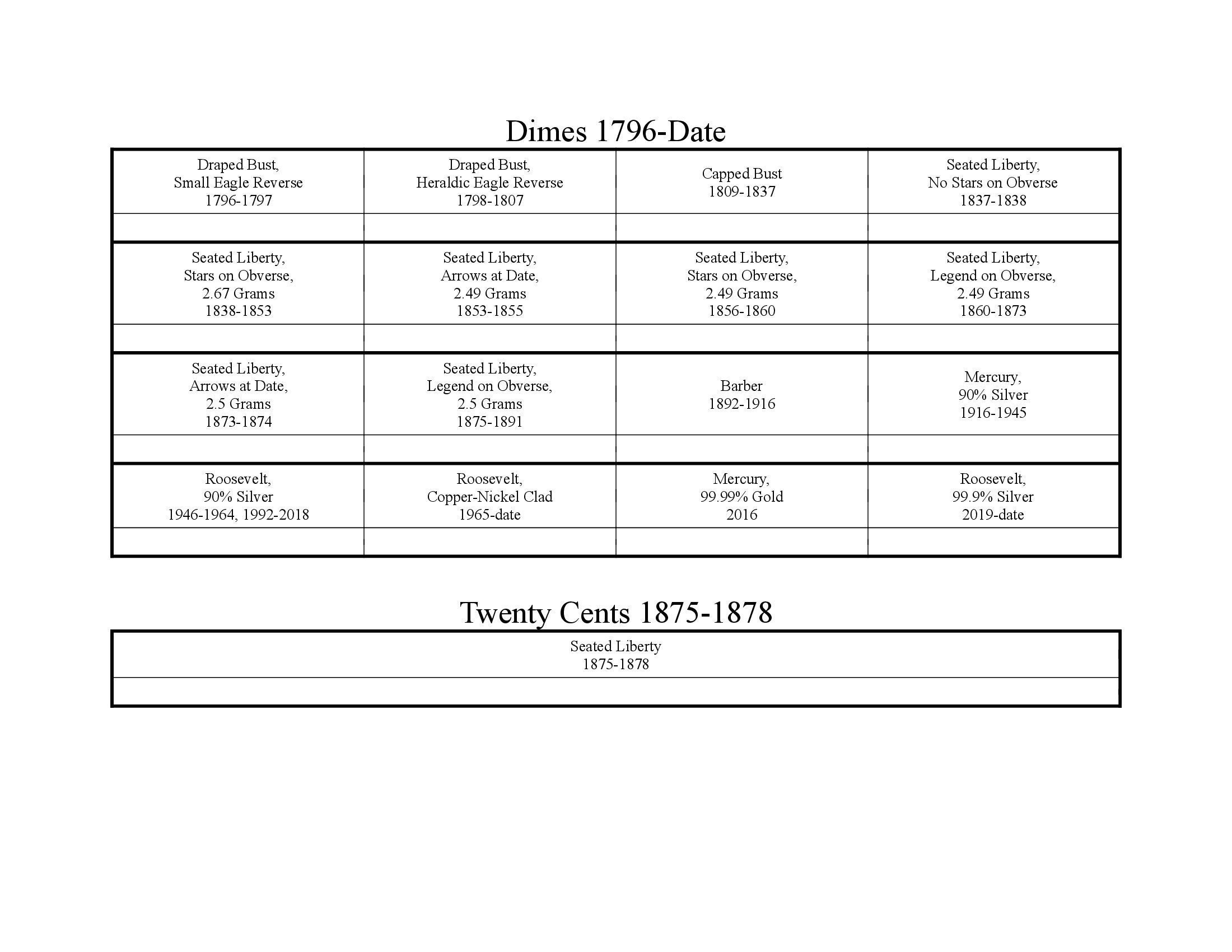 United States Coins Info Sheet