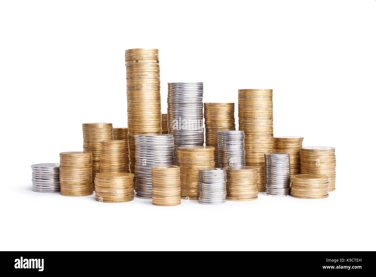 Coin stack isolated on white background Stock Photo - Alamy