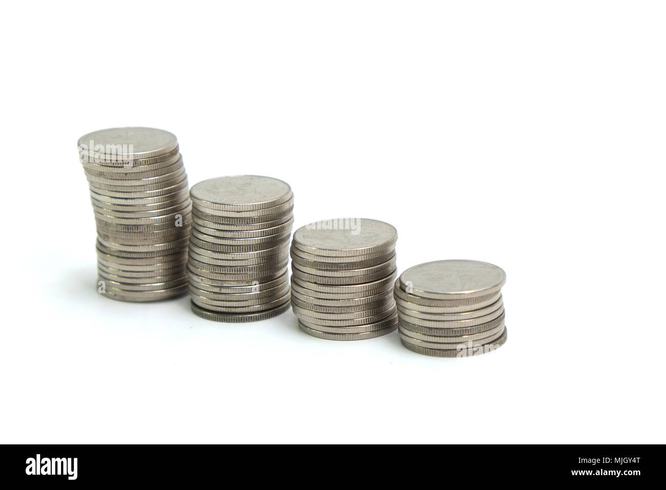 Coin stack on white background Stock Photo - Alamy