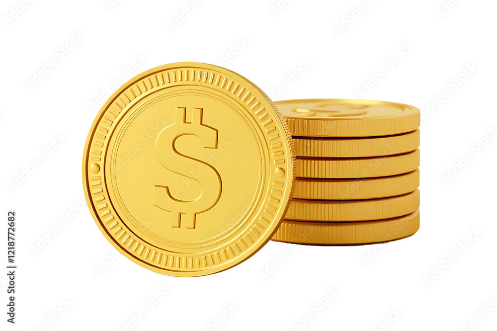 3D Stack of Gold Coins Icon Isolated. Pile of American Dollar Coin ...