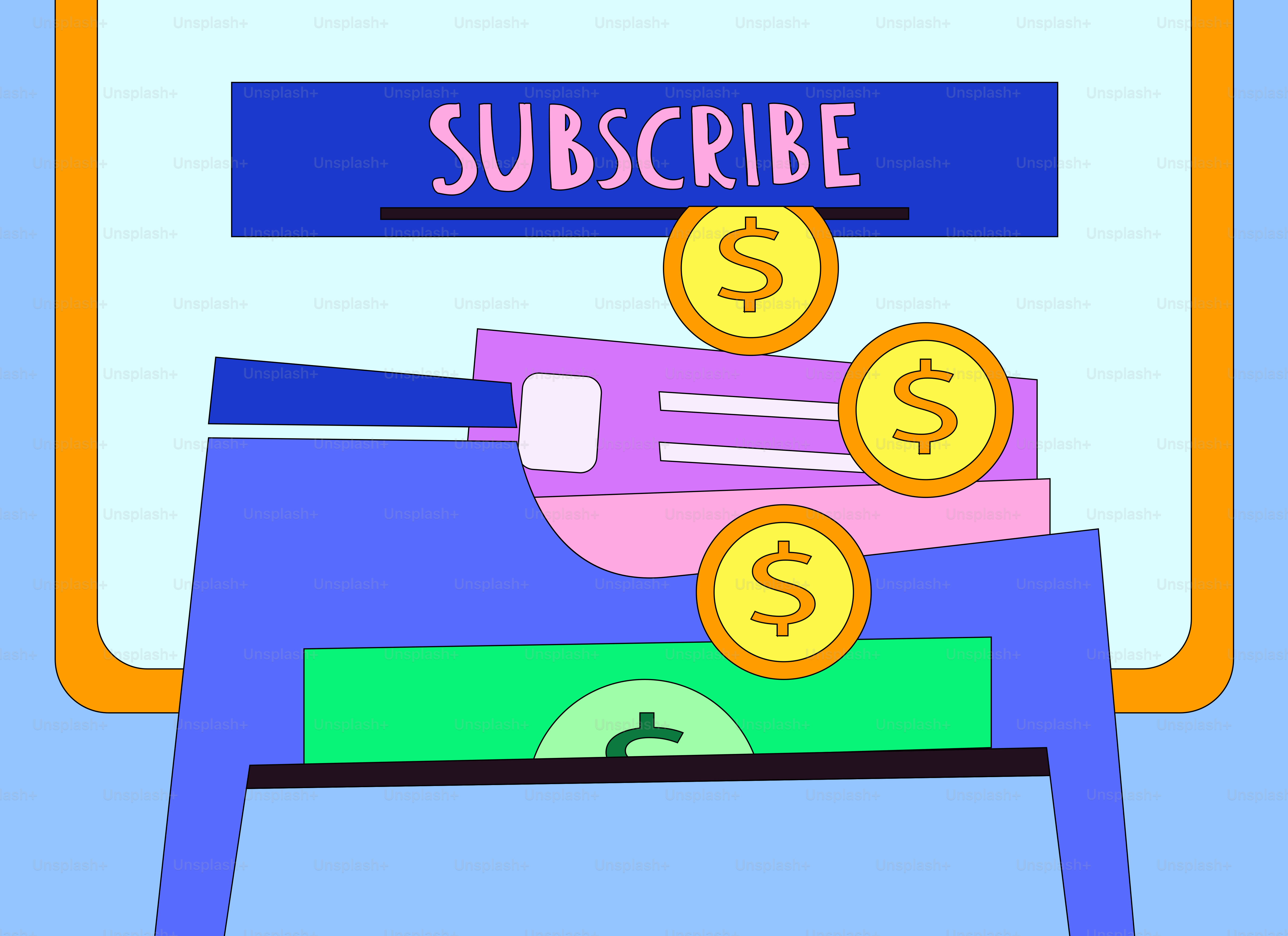 Coins and cash going into a subscribe machine. vector – Business Image ...