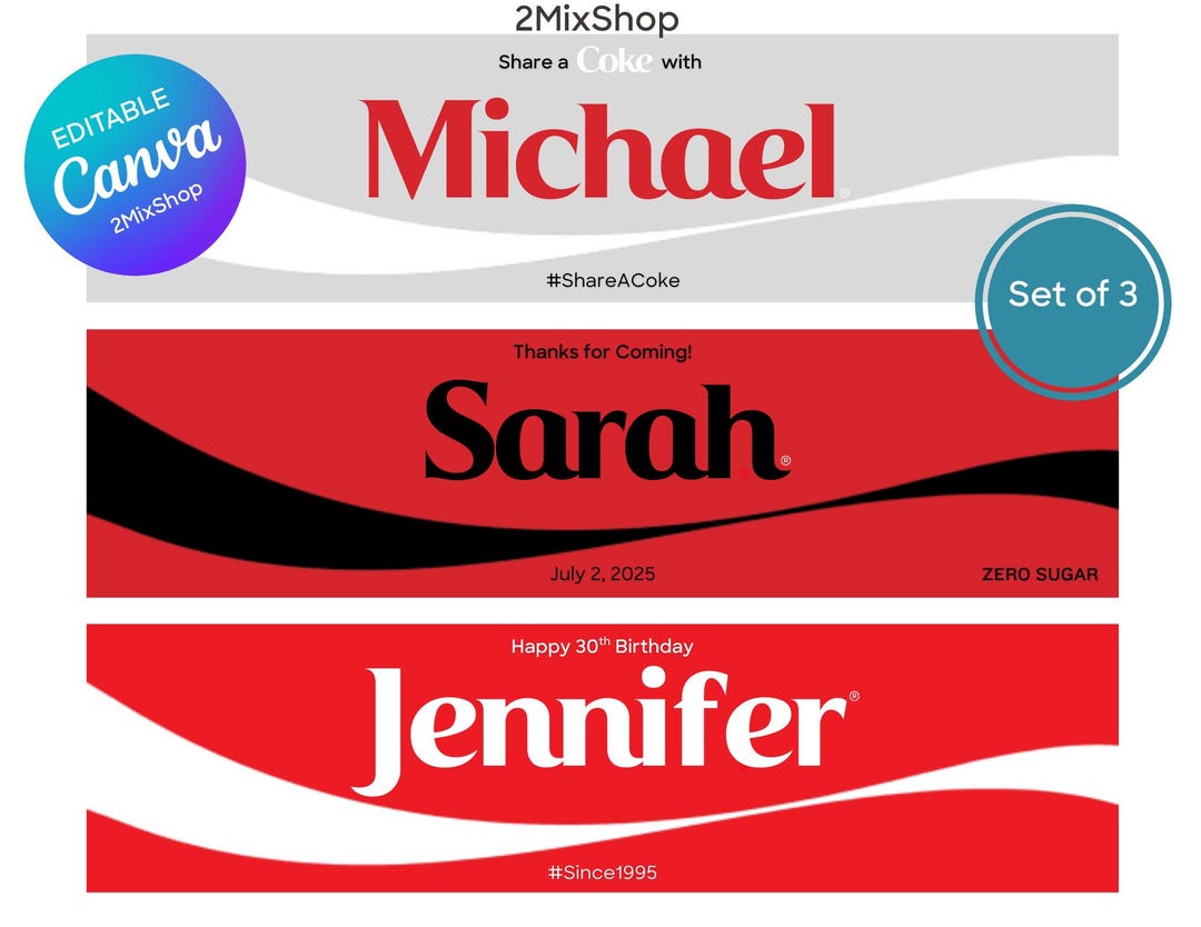 Editable Coke Coca-cola Bottle Labels 3 Editable Canva Templates ...