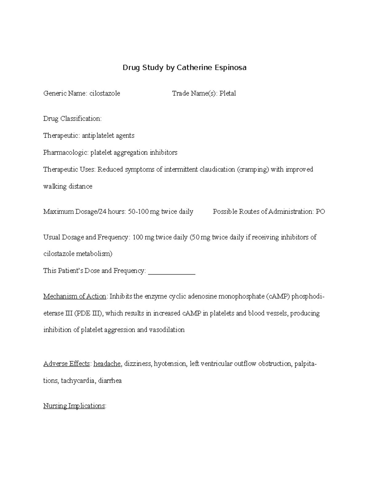 Cilostazol Drug Study: Antiplatelet Agent Overview and Nursing ...
