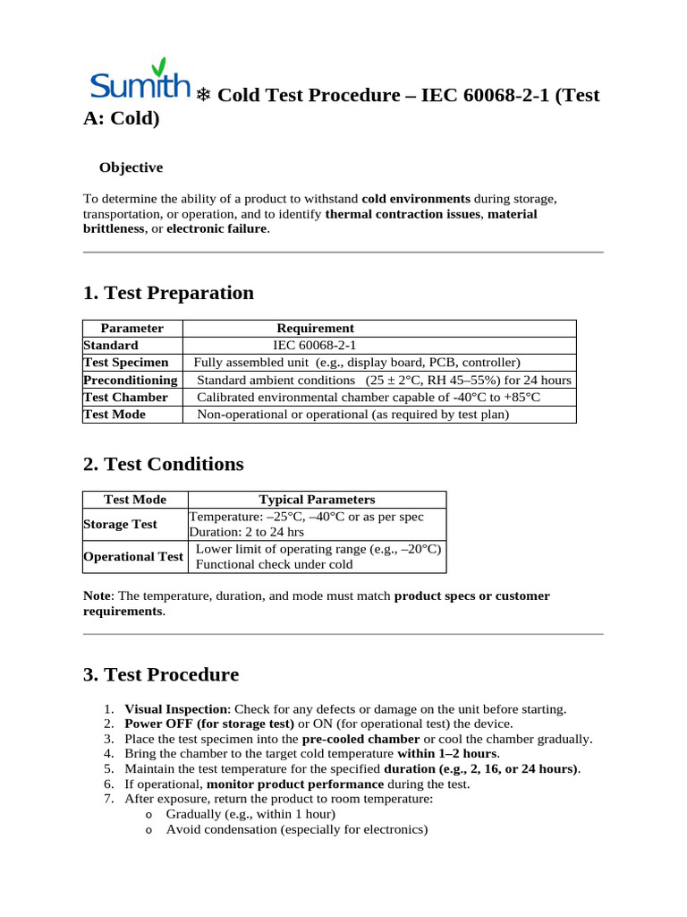 Cold Test Procedure Overview - IEC 60068-2-1 | PDF
