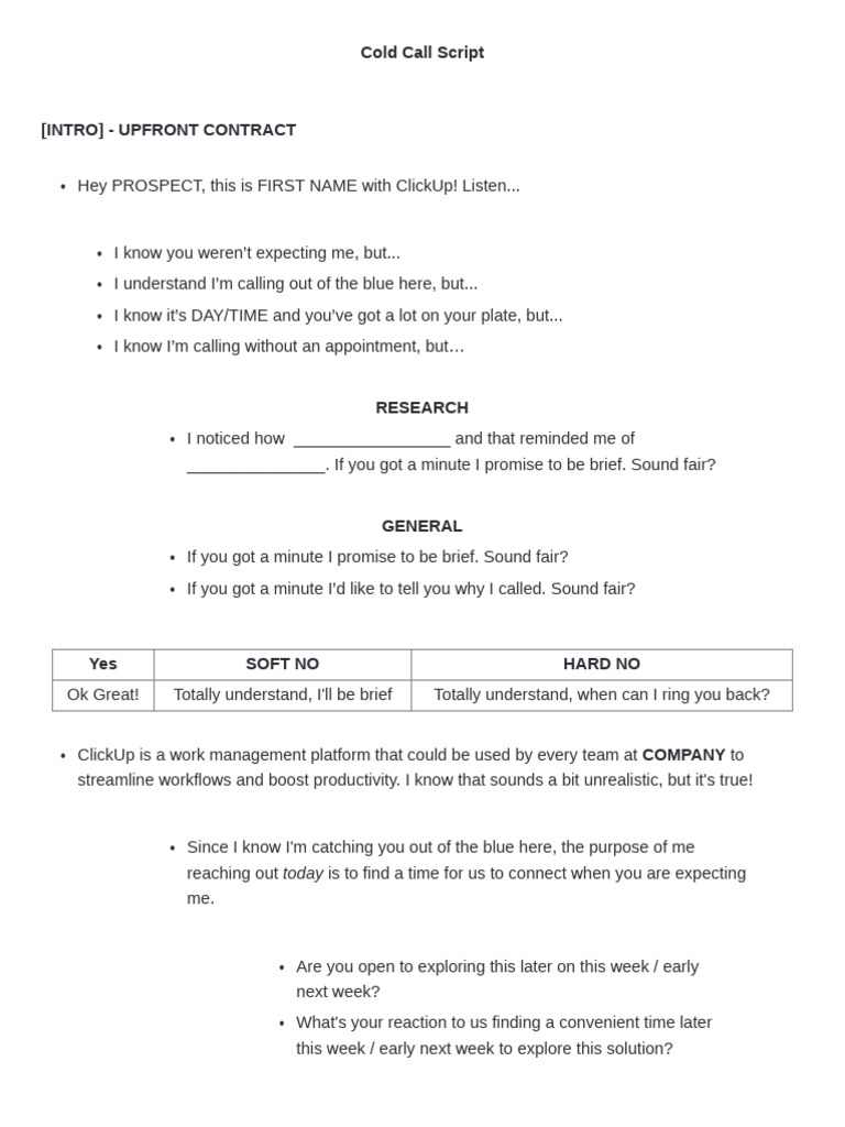 Cold Calling Script Template | Cold calling scripts, Cold calling ...