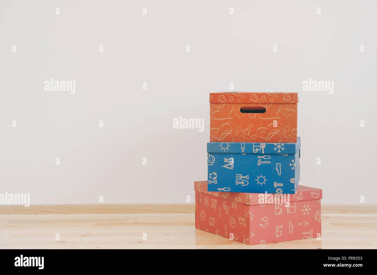 Colorful Stacked Storage Boxes Stock Photo - Alamy