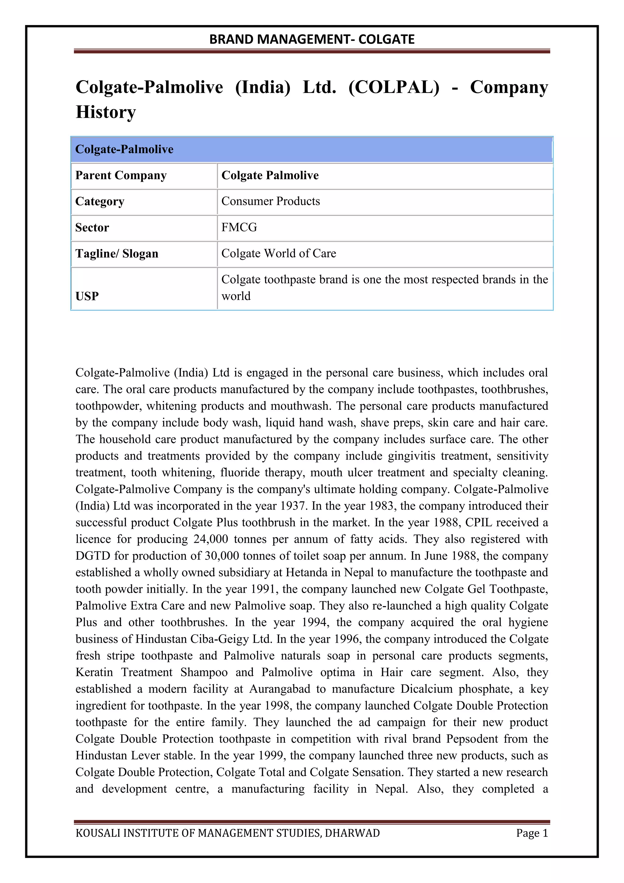 Colgate Brand Analysis - Copy.docx.pdf - Colgate-Palmolive Parent ...