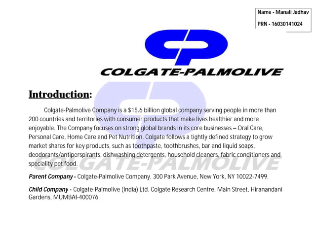 252214224-Colgate-Palmolive - COLGATE- PALMOLIVE INTRODUCTION OF ...