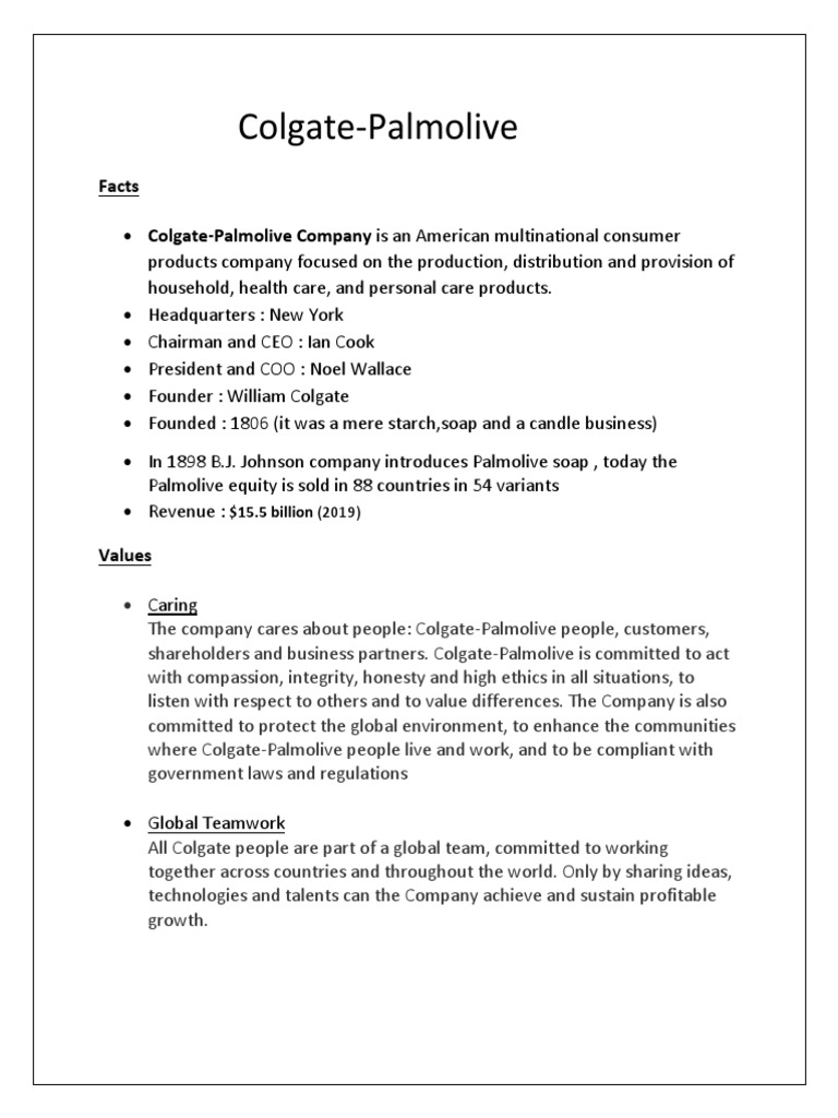 Colgate-Palmolive Company Profile | PDF | Business | Economies
