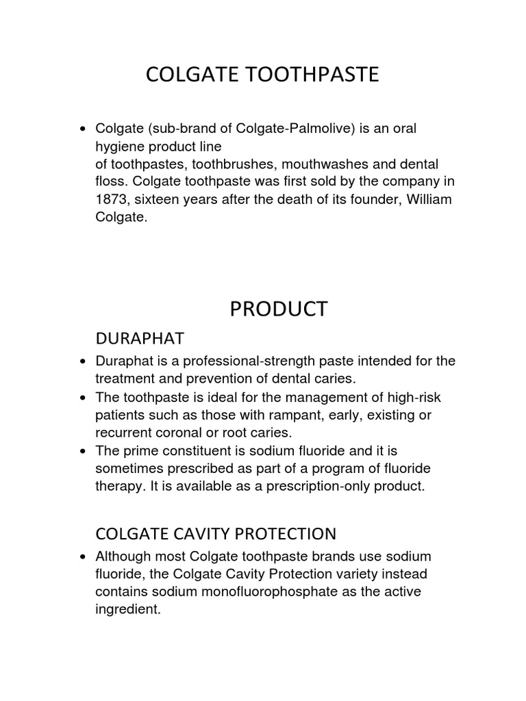 Colgate Toothpaste: Ingredients Study | PDF