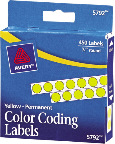 Color Coding Labels, 1/4" Round, Yellow, Permanent, 450 Labels - Fisher ...