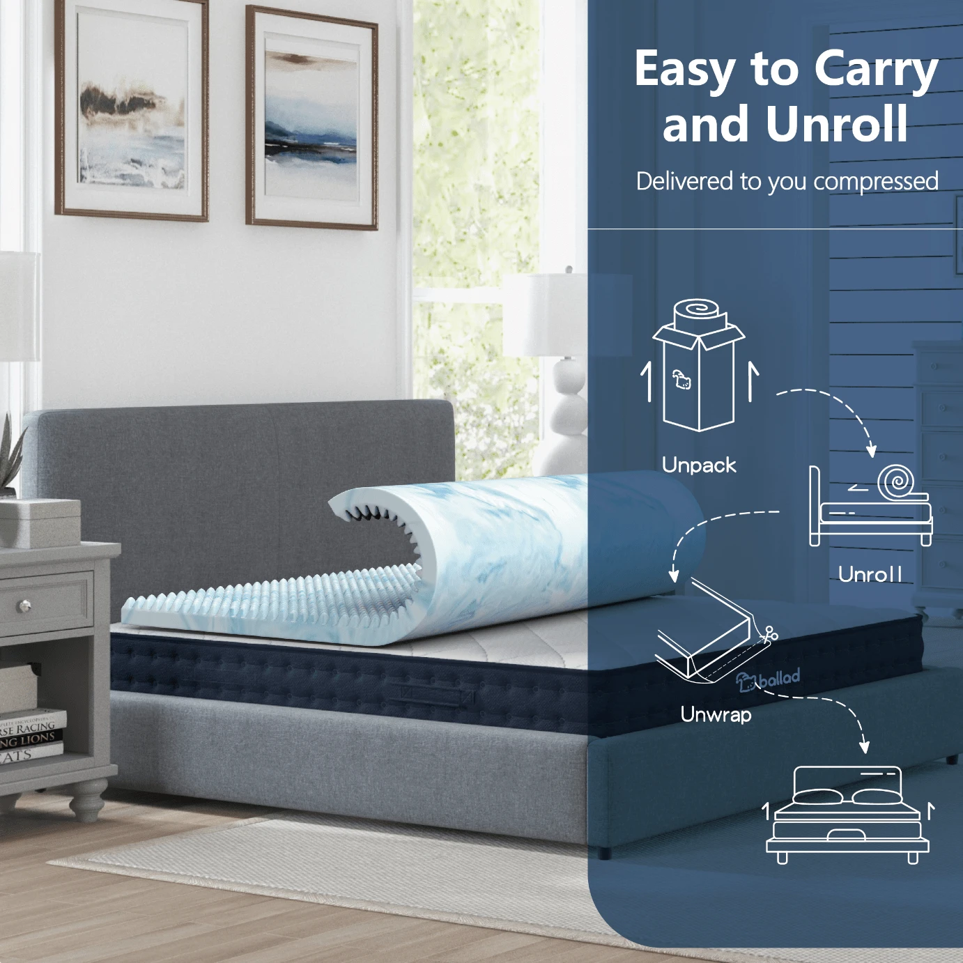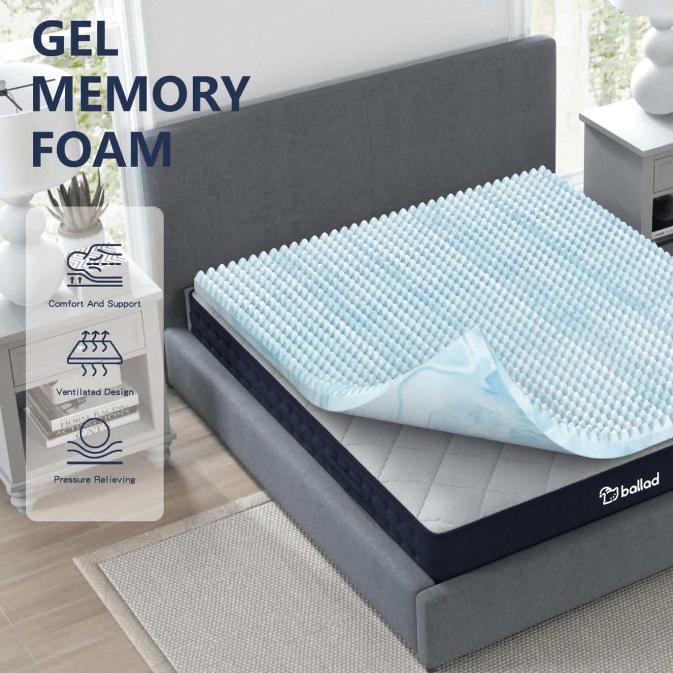 Ballad 3-Inch Cooling Egg-Shaped Memory Foam Thin Mattress Pad ...