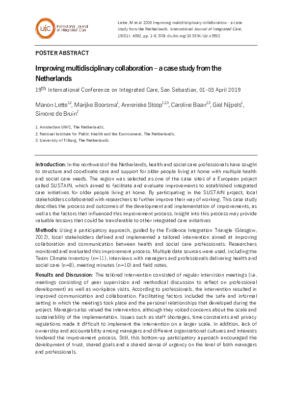 (PDF) Improving multidisciplinary collaboration – a case study from the ...