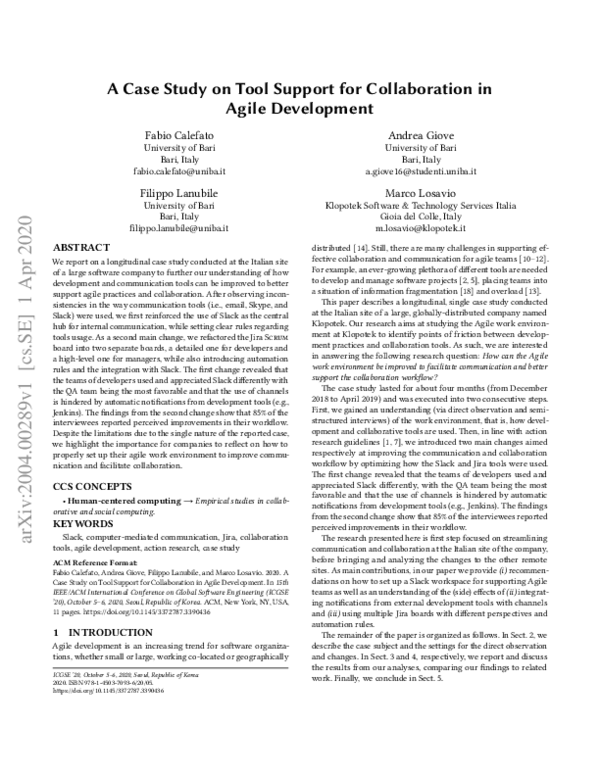 (PDF) A case study on tool support for collaboration in agile development