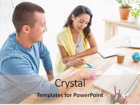 Smiling Colleagues Using Colour Wheel PPT template 82 | CrystalGraphics