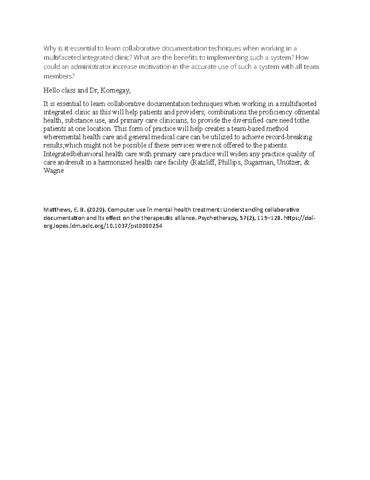 Topic 6 DQ 1 - Collaborative Documentation Techniques Benefits - Studocu