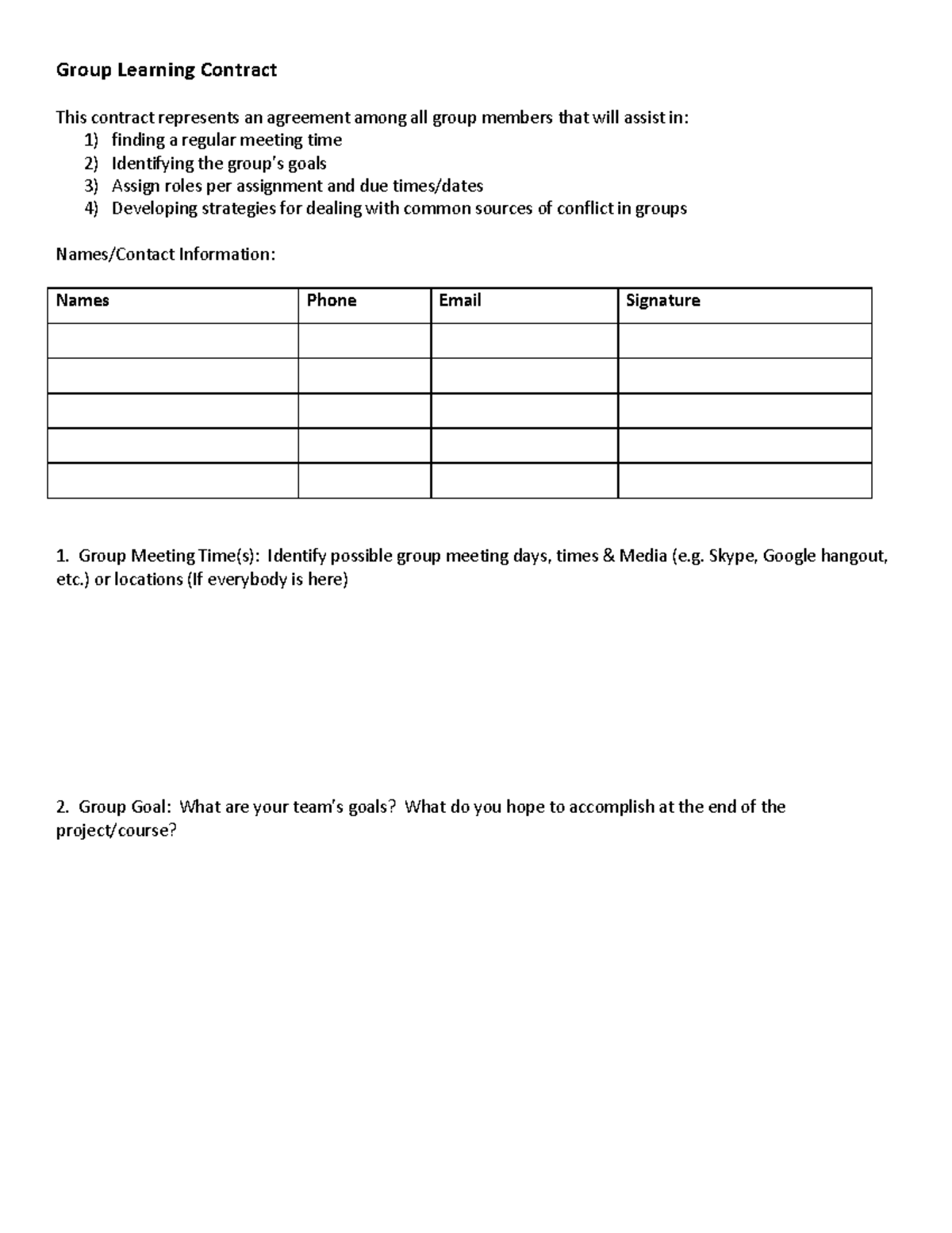 Group Learning Contract - Skype, Google hangout, etc.) or locations (If ...