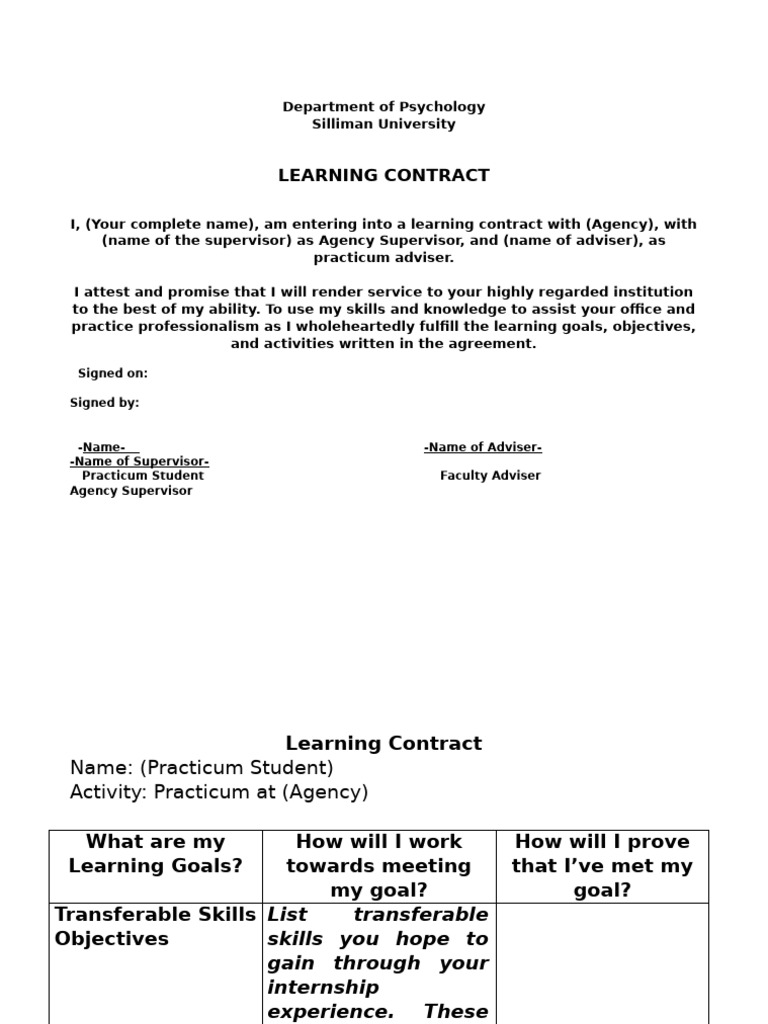 Learning-Contract-Template-1-1 280 - University of the Cordilleras ...
