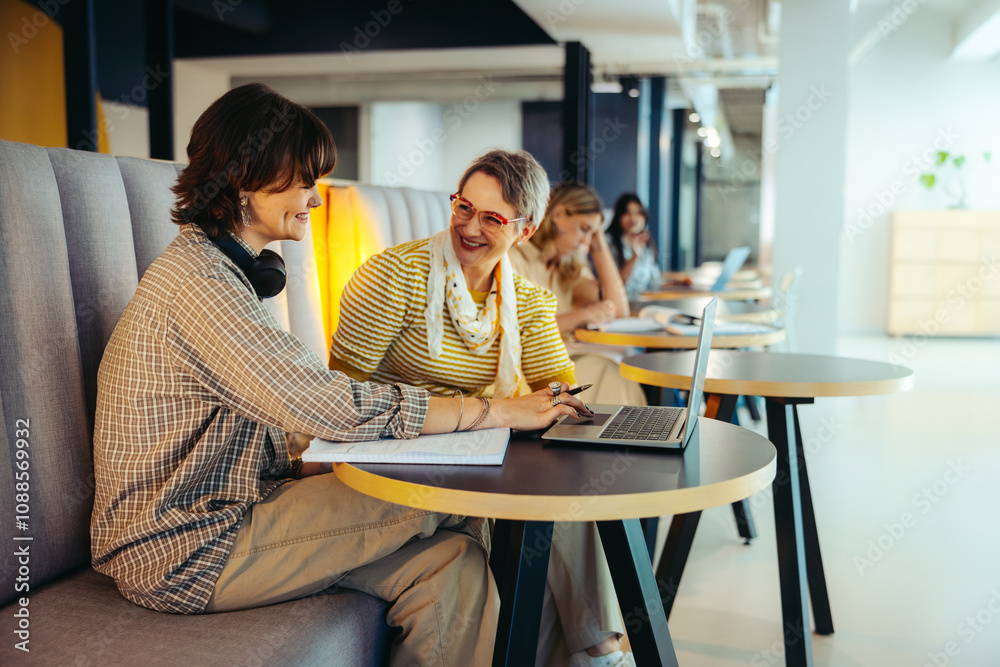 Collaborative learning on campus with engaged students sharing ideas ...