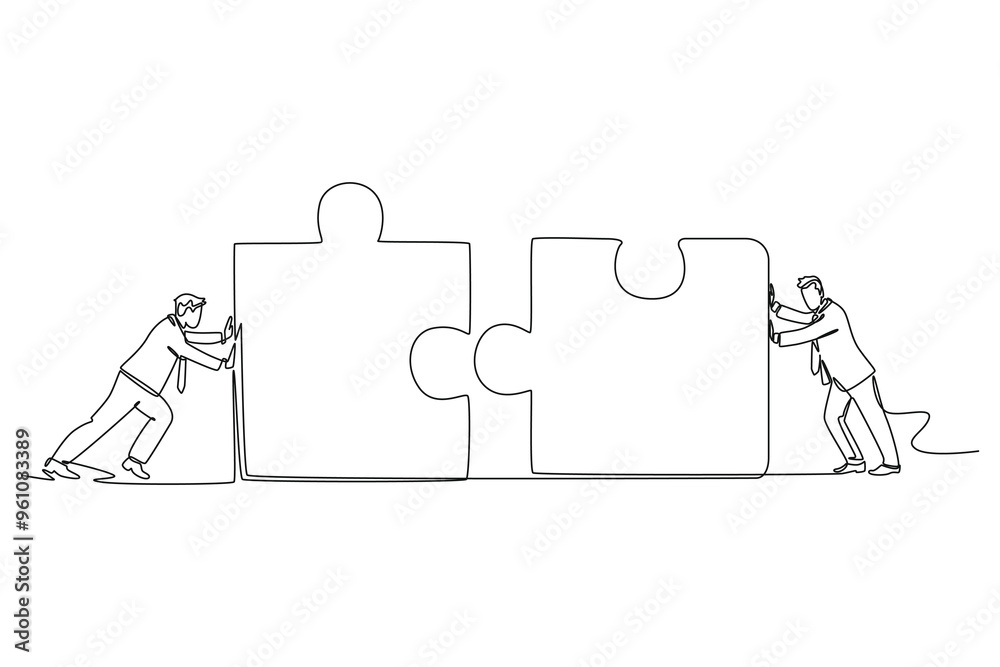 Single continuous line drawing of businessman partner connect jigsaw ...