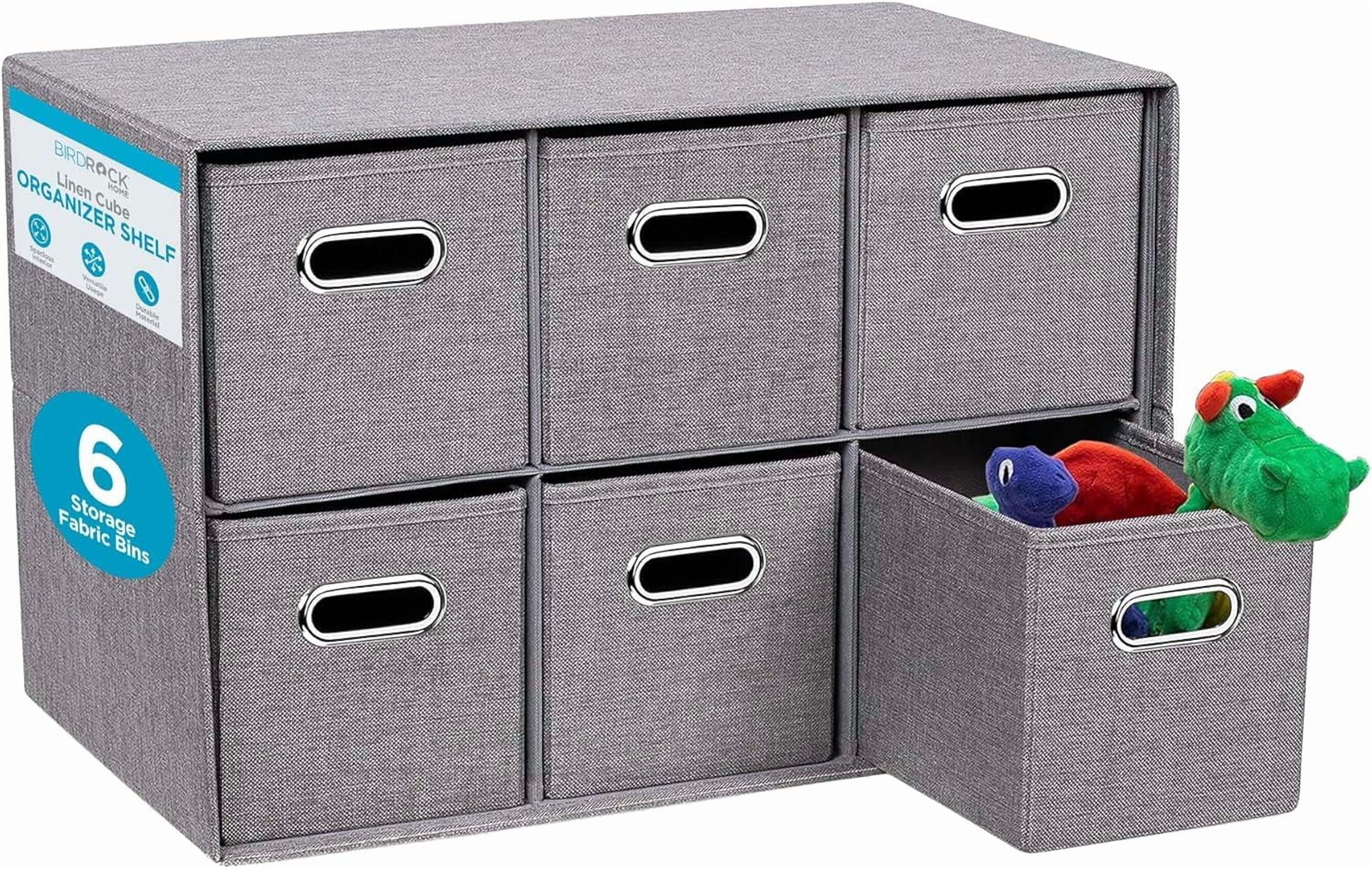 Linen Cube Organizer Shelf w/ 6 Storage Fabric Bins - Foldable ...