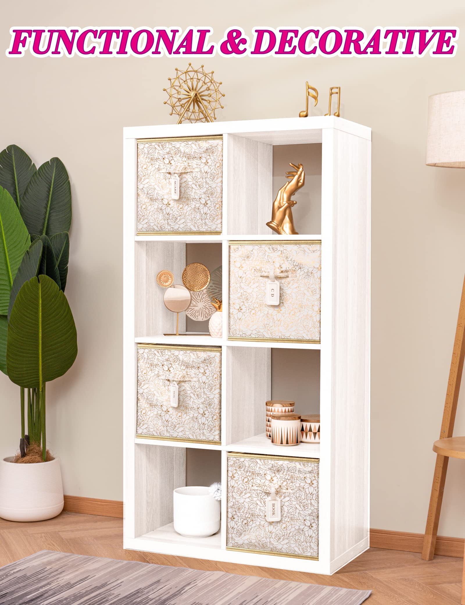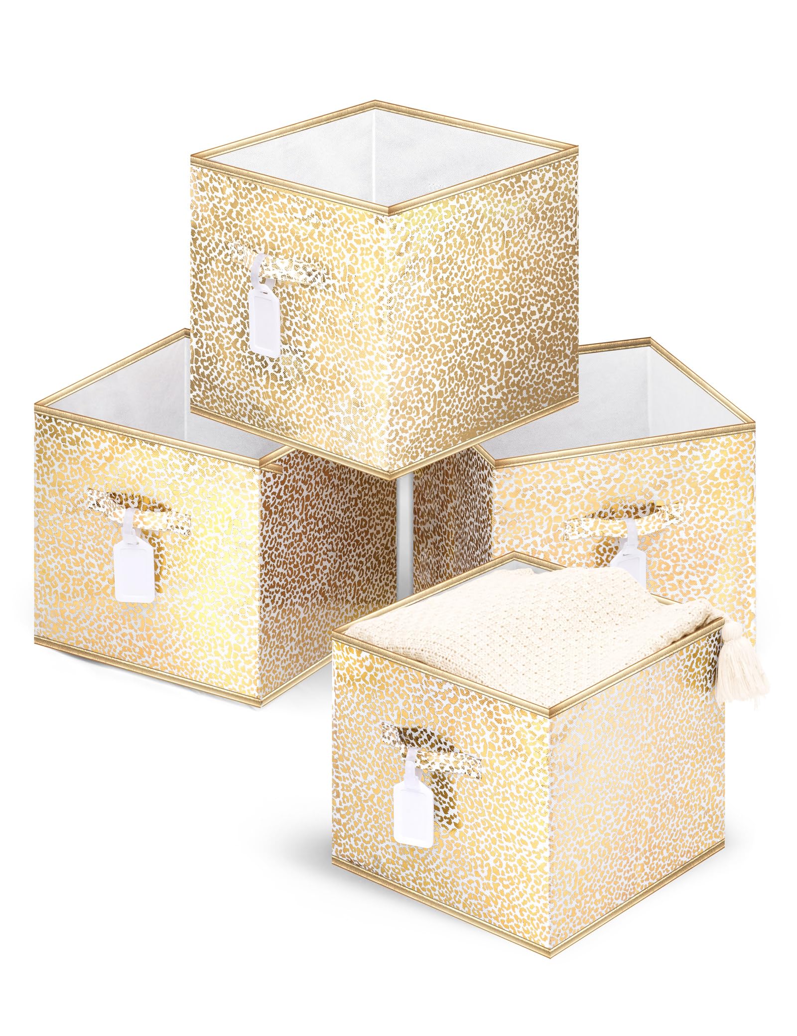 DAMAHOME Fabric Collapsible Cubby Storage Cubes (4 Pack) White/gold. - Etsy