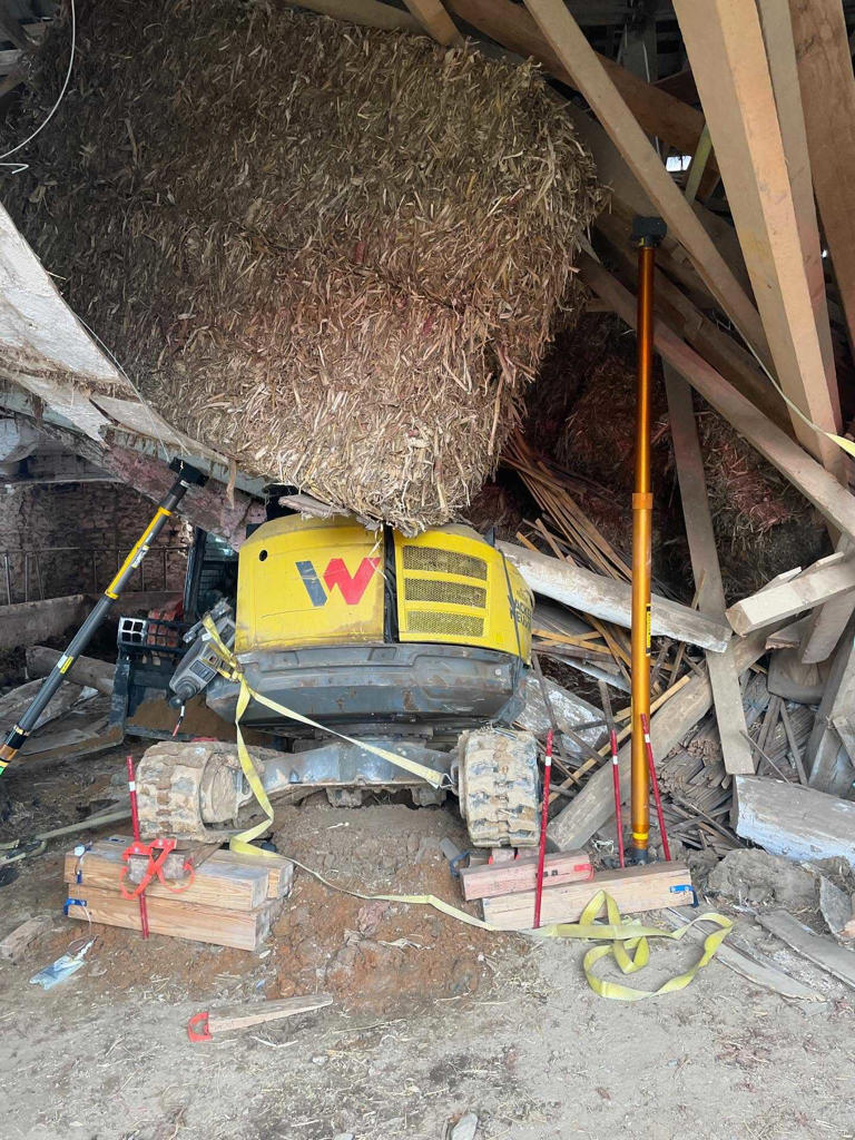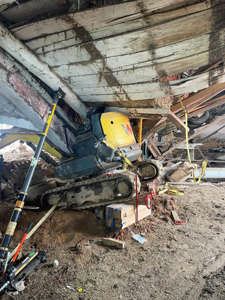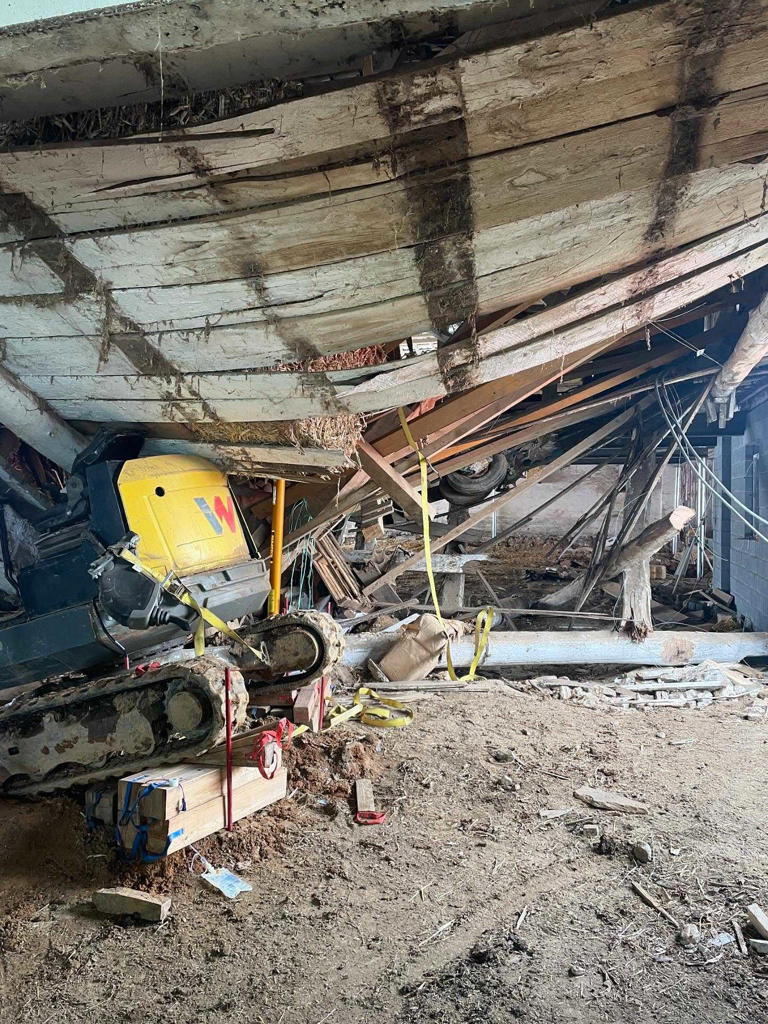 Person flown to hospital after barn collapse