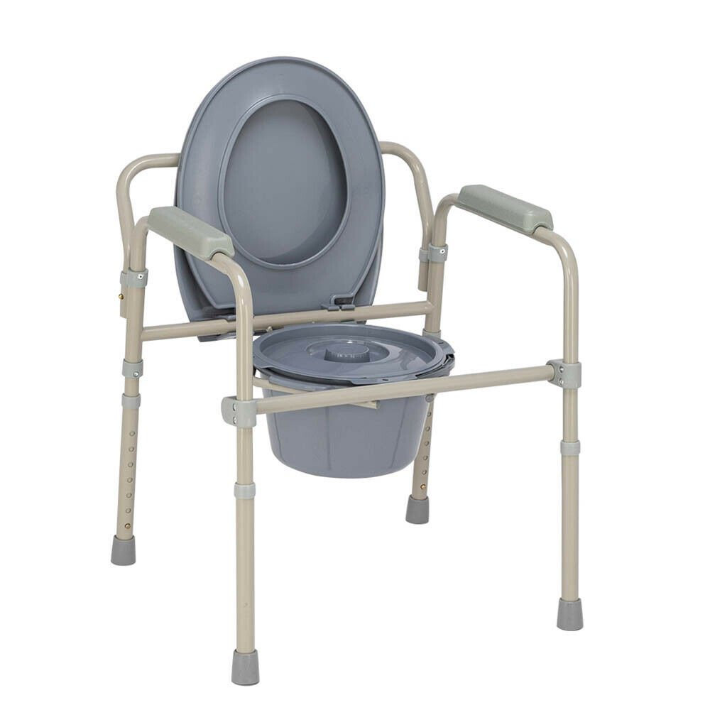 Medline Steel 3-in-1 Folding Commode, Includes Seat with Lid, Bucket ...