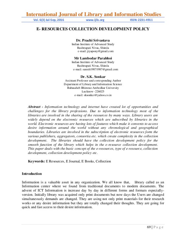 (PDF) COLLECTION DEVELOPMENT POLICY FOR E-RESOURCES