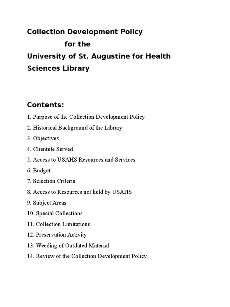 Sample of A Collection Development Policy PDF | PDF | Academic Library ...