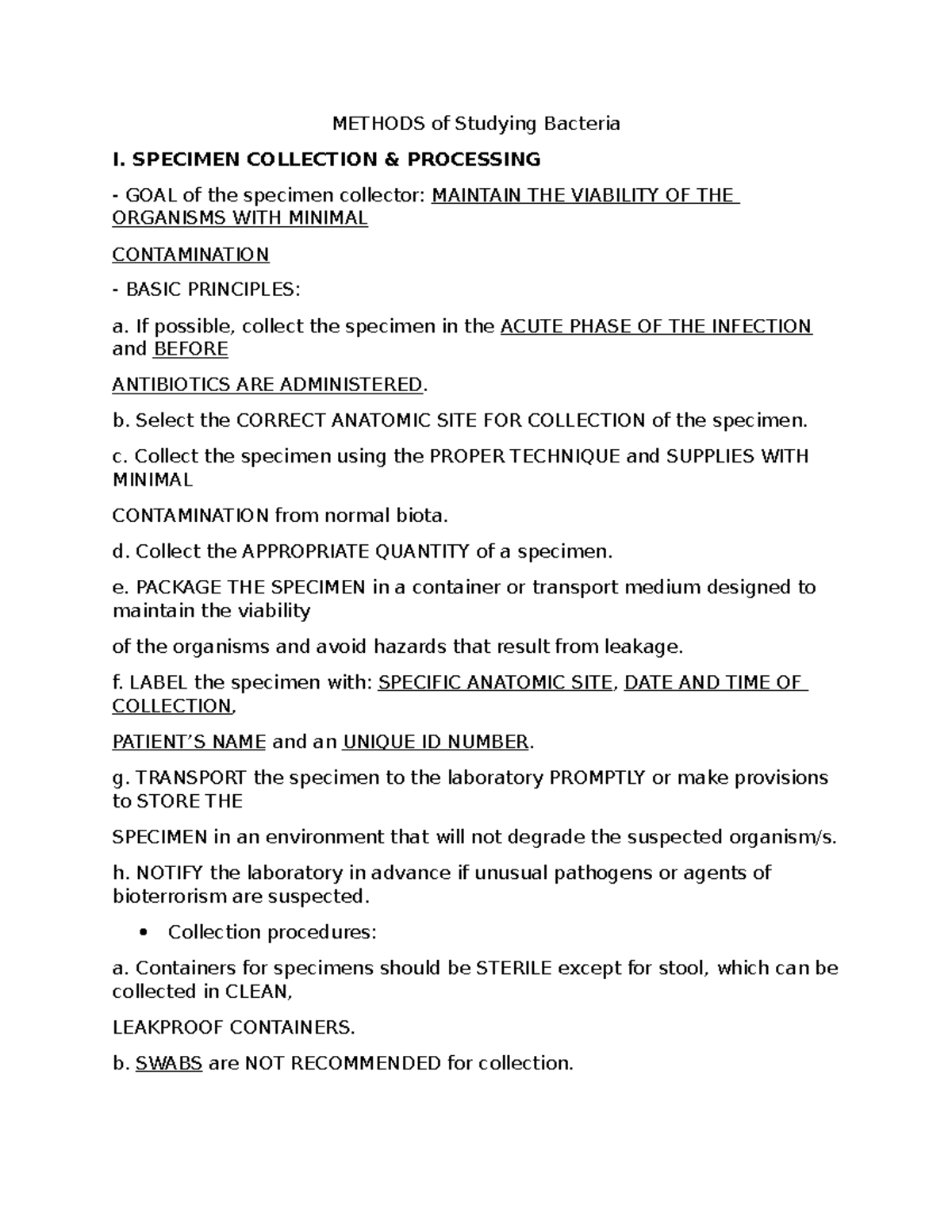 Lesson 7 2 Bacteriology Specimen Collection and Processing