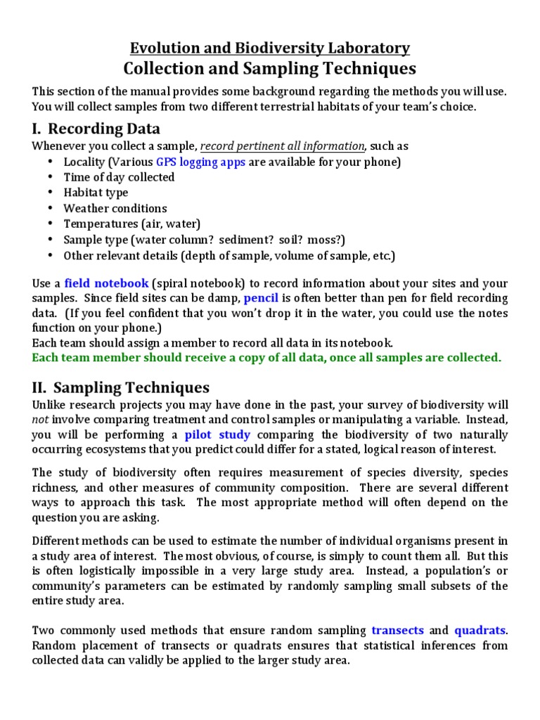 Collection and Sampling Techniques: Evolution and Biodiversity ...