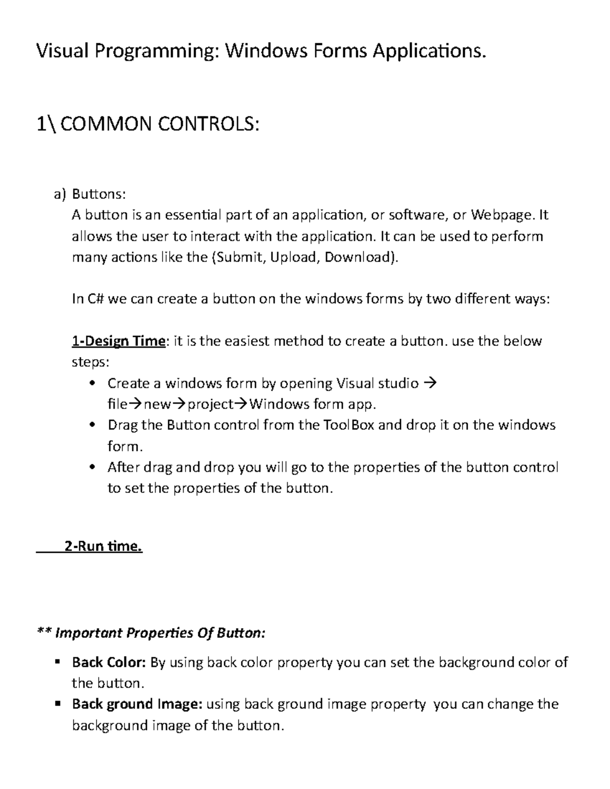 Visual Programming - 1\ COMMON CONTROLS: a) Buttons: A button is an ...