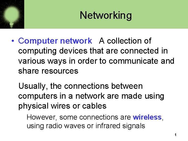1 Concepts of Computer Communications. 2 What is a Computer network ...