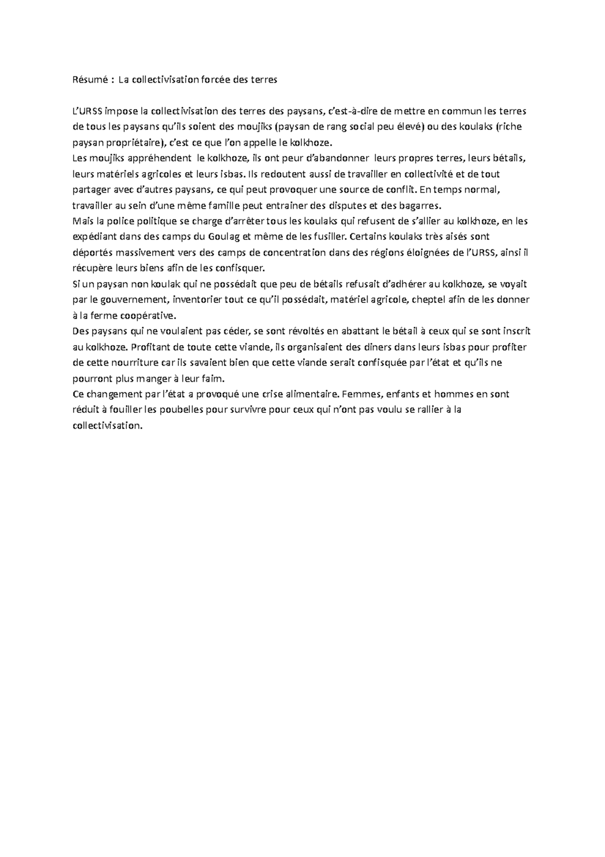 URSS - Résumé de la collectivisation des terres et ses conséquences ...