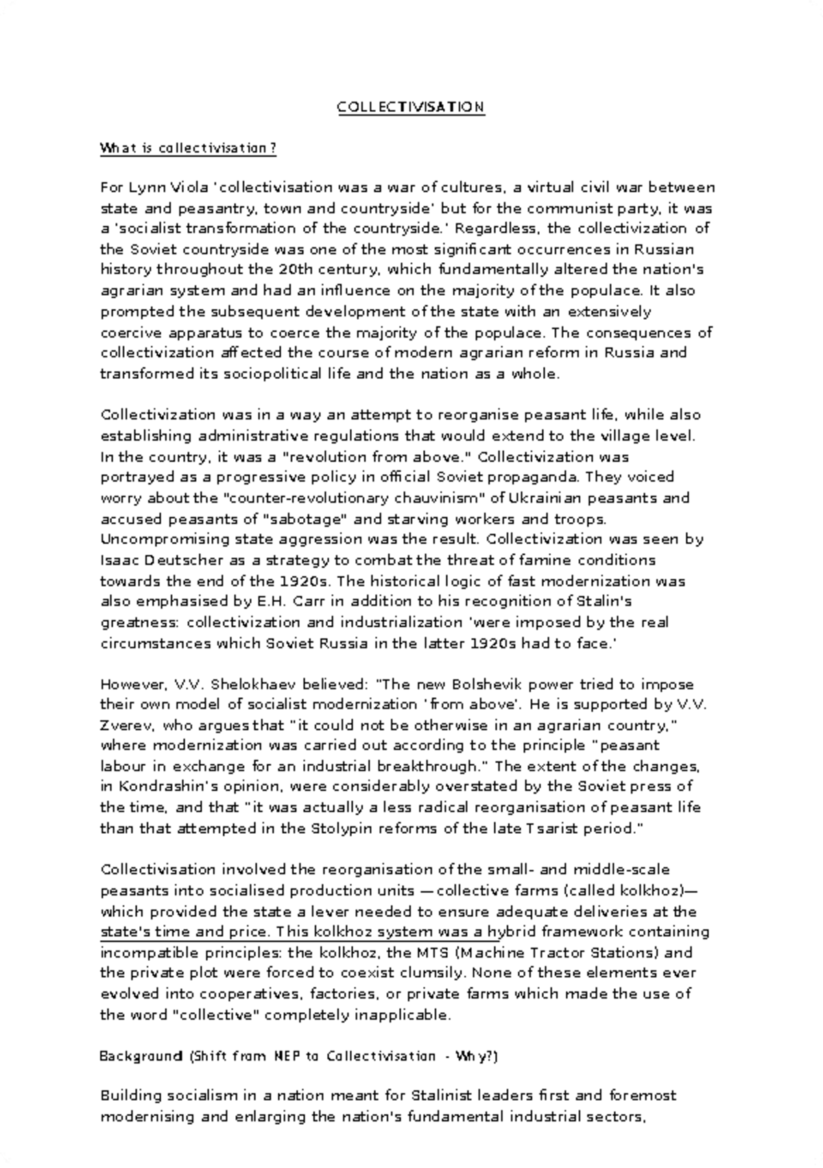 Collectivisation - Summary Ba Honours History - COLLECTIVISATION What ...