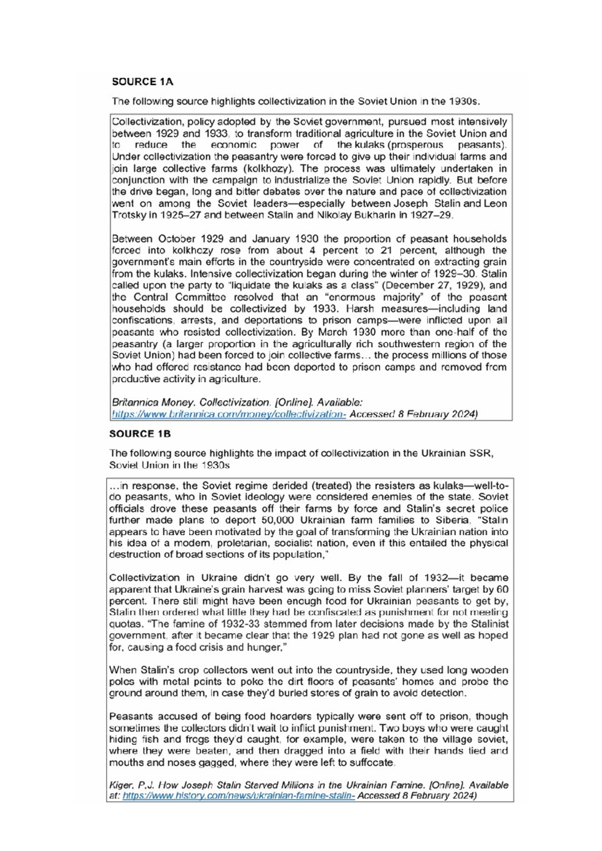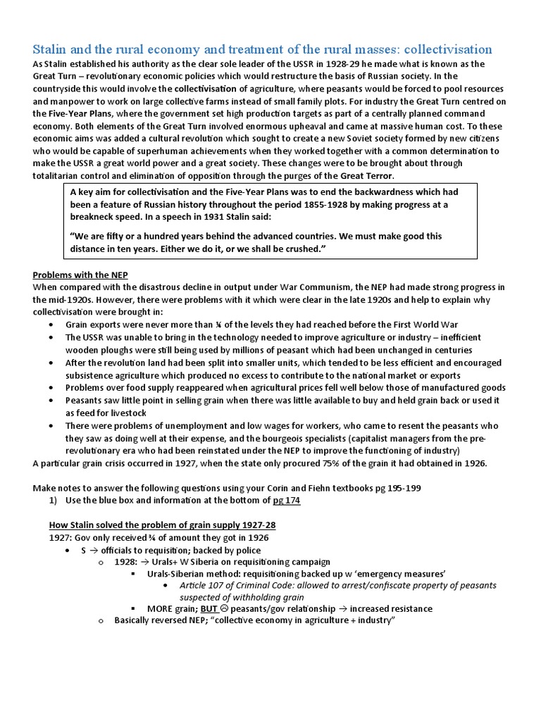 Collectivisation Impact on Soviet Peasants: Source Analysis (HIST 101 ...