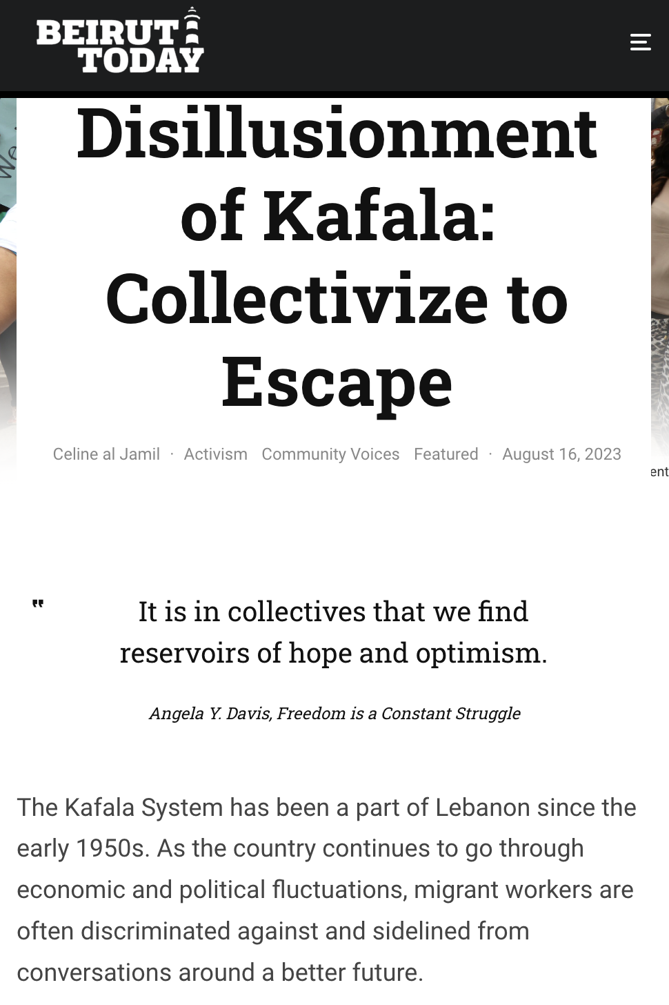 The Disillusionment of Kafala: Collectivize to Escape – Celine Aljamil