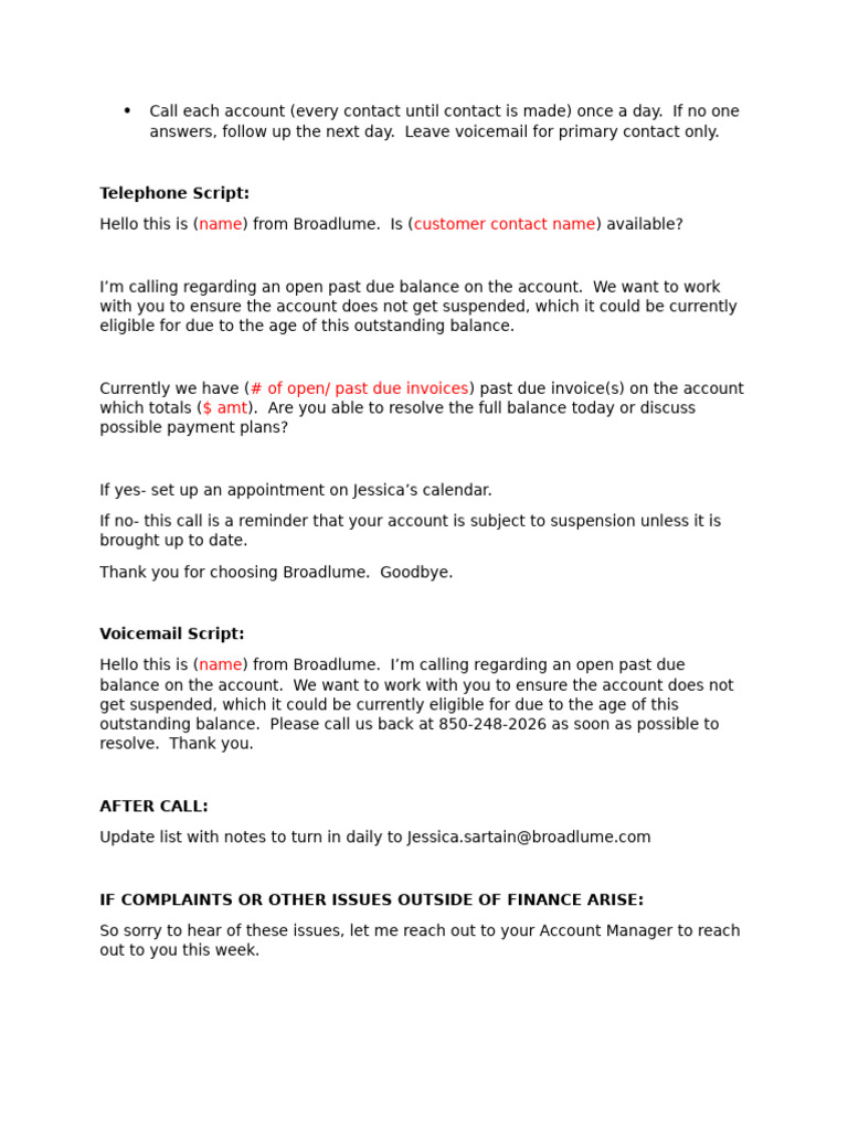 Past Due Account Call Script | PDF