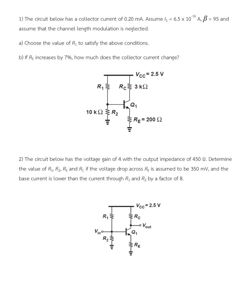 Solved 1) The circuit below has a collector current of 0.20 | Chegg.com