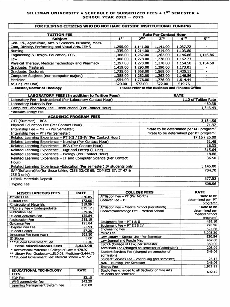 Schedule of Fees College 1st Semester 2022 2023 | PDF | Payments | Fee