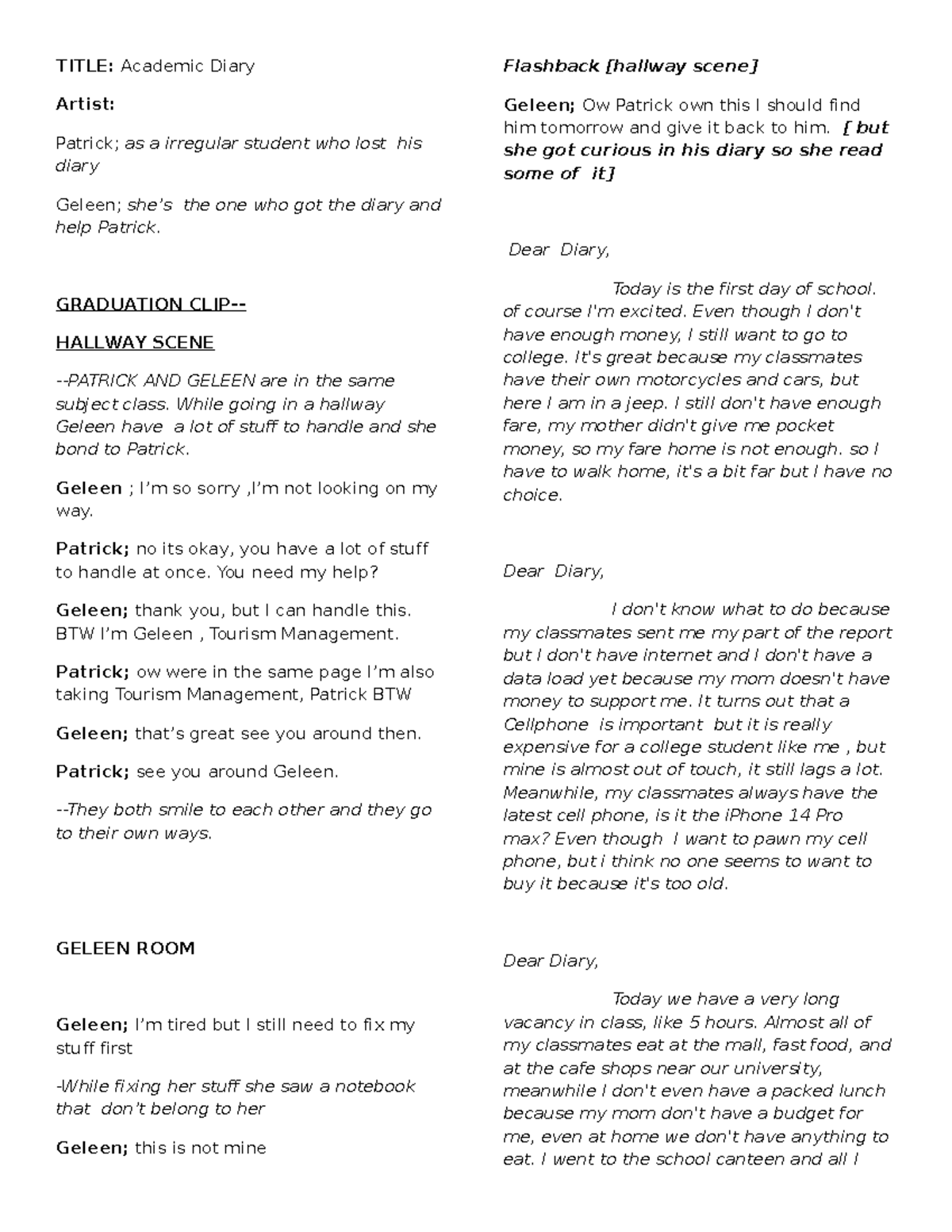 Academic- Diary - Script - TITLE: Academic Diary Artist: Patrick; as a ...