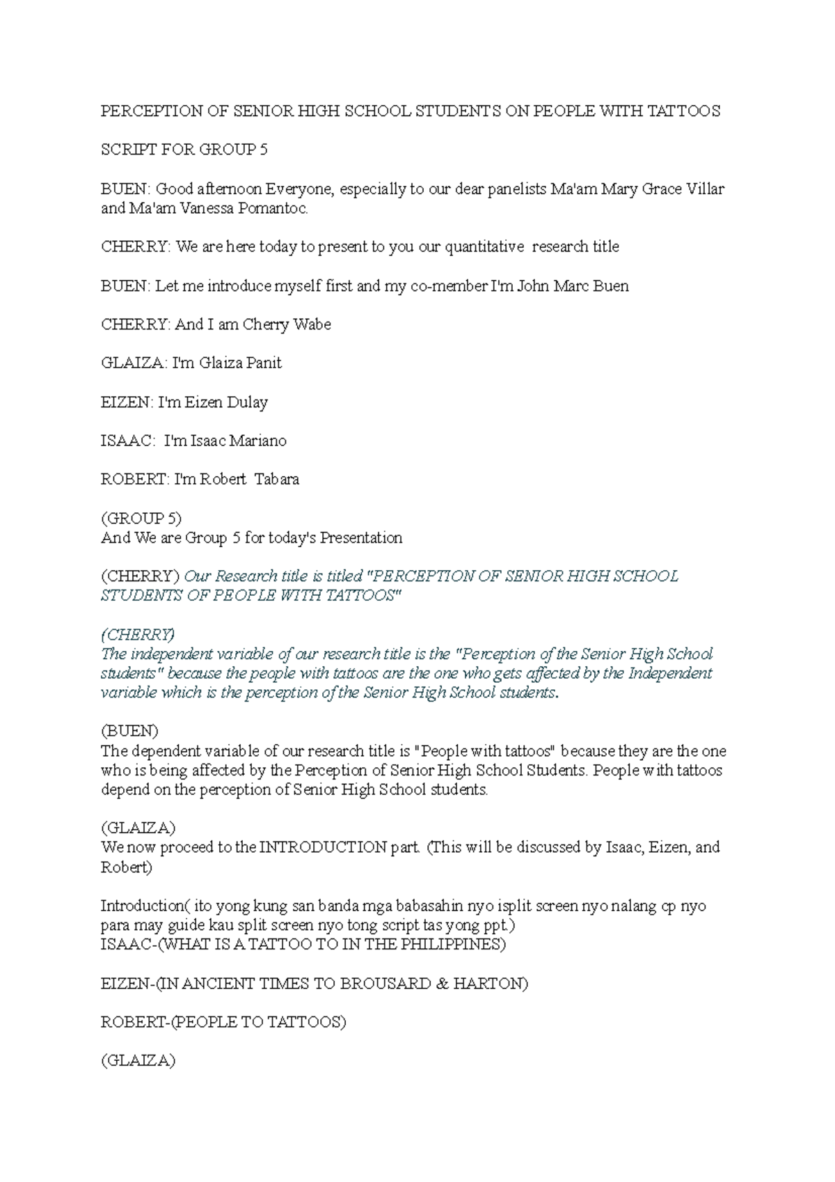 Research Script - for school purposes - PERCEPTION OF SENIOR HIGH ...