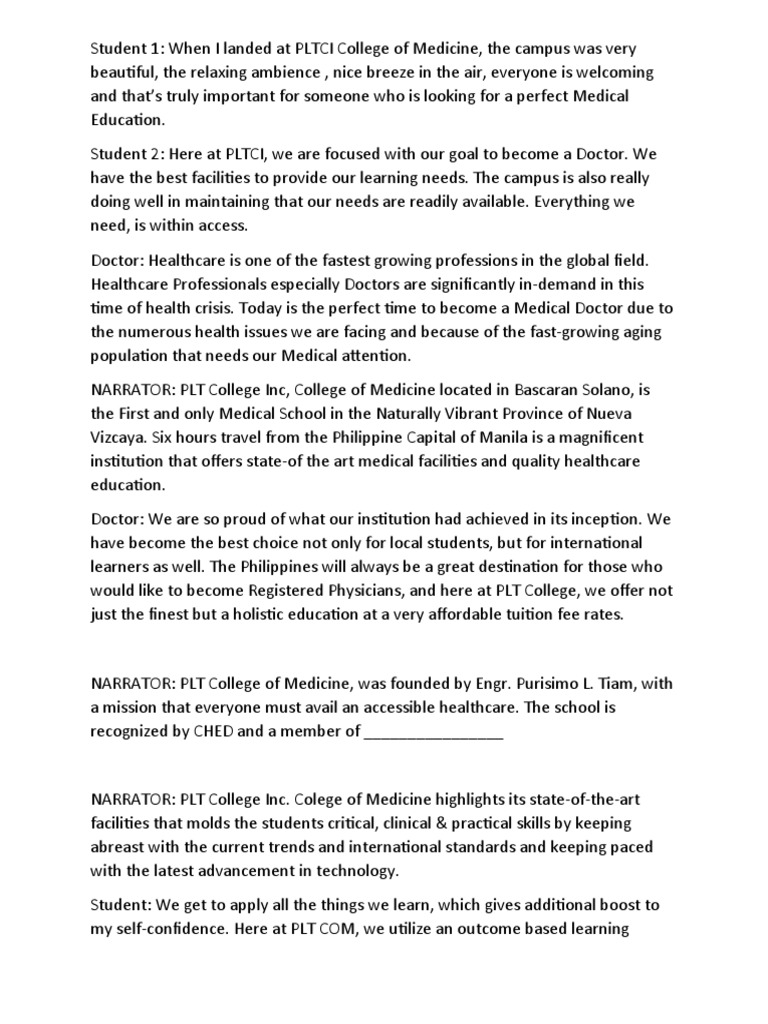 Script - University & I (Group Project) Ms. Esperanza Maribao | PDF ...